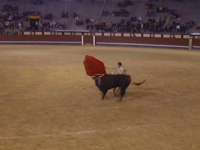 feet from my seat, lay the tortured, bloody body of the dead bull from the